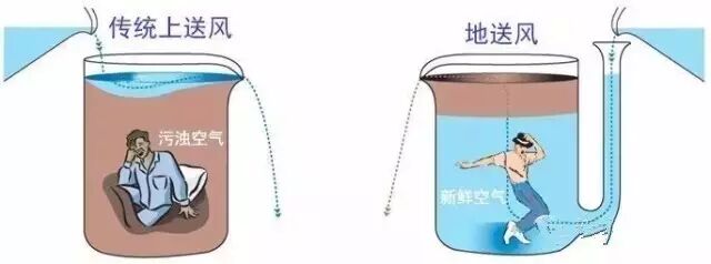 适用条件: a、一般适用于污染源与发热源相关的场所,且层高不低于2.5m,此时污浊空气才易于被浮力尾流带走; b、对房间的设计冷负荷也有一个上限。目前的研究表明,如果有足够的空间来大型送风散流装置的话,房间冷负荷可达120w/㎡,房间冷负荷过大,置换通风的动力能耗将显著加大,经济性下降; c、另外地送风装置占地、占空间的矛盾也更为突出。 (二)按安装方式分类